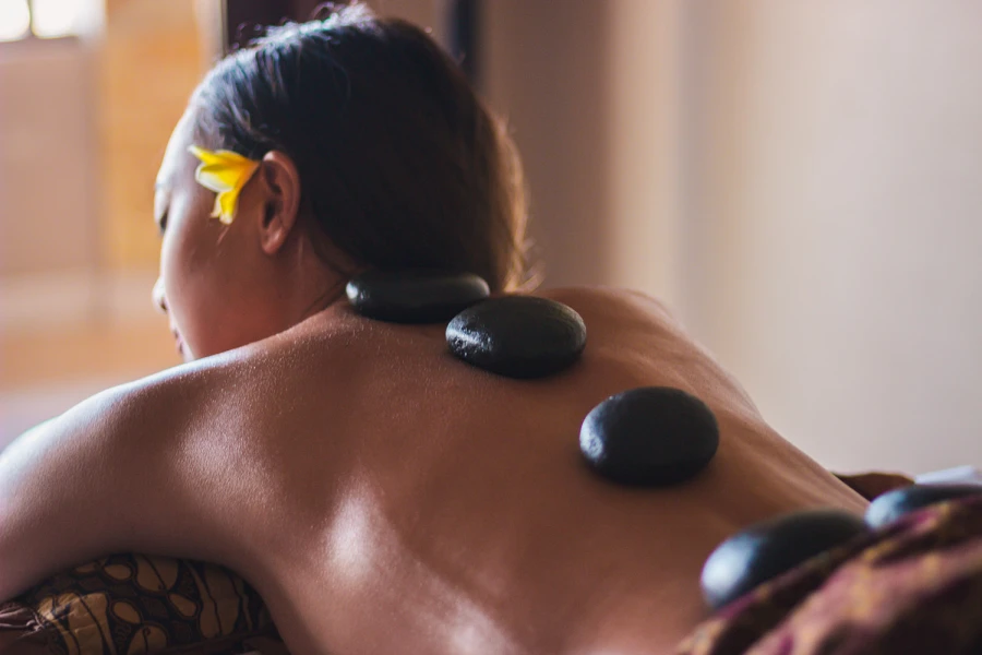 ニューヨークでも大人気のストーンセラピーで、天然の温めた石や冷たい石を体に当てて温冷効果をはかるマッサージです。全身のツボにのせ各ツボに効果をもたらします。温めた天然石には遠赤外線効果があり、体の深部まで温め血液の循環を活発にし代謝を促します。
