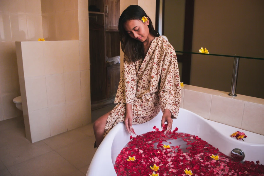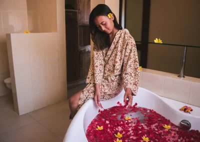 この施設やサービスはバリ島内でも珍しく、特に女子旅やご家族連れにご好評いただいております。また、広々としたバスタブに南国のカラフルなお花を浮かべたフラワーバスは是非ともご利用いただきたいメニューの一つです。